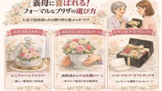 この記事は、母の日をはじめとする節目に「義母へ失礼のない、きちんとしたプリザーブドフラワーを贈りたい」と考える方に向けたガイドです。実母とは違い、距離感や家族内バランスに配慮が必要な義母ギフトは、色・サイズ・言葉選びで印象が大きく変わります...
