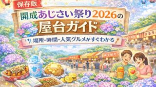 開成あじさい祭り2026の屋台情報が気になる方に向けた記事です。出店場所や営業時間の目安、人気グルメ、混雑を避けやすい回り方までわかり、初めてでも食べ歩きを楽しみやすくなります。