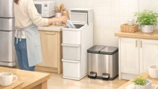 分別ゴミ箱の選び方を初心者向けにやさしく解説。縦型スリム・2段・45L・大容量の違いから、キッチンで使いやすい分別アイデア、一つのゴミ箱で中で分ける工夫までわかります。